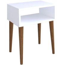 Mesita de Noche Color Blanco con cajón Abierto y Patas de Madera...