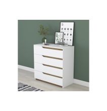 Material de Alta Calidad: Fabricada en aglomerado con revestimiento de melamina, la Cómoda Cindy ofrece una construcción robusta y duradera que garantiza una larga vida útil.