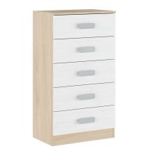 El color cambria blanco del sinfonier aporta luminosidad y frescura a cualquier ambiente. Esta tonalidad neutra es fácilmente combinable con una amplia variedad de estilos decorativos, desde los más clásicos hasta los más modernos. Además, el acabado en blanco mate le confiere un aspecto elegante y sofisticado, convirtiéndolo en el protagonista indiscutible de tu dormitorio.