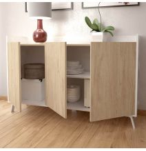 169,90 €El Aparador Blanco y Roble con 3 puertas y 4 patas es el mueble de almacenamiento que estabas buscando. Destacamos: 🌟 Gran capacidad de almacenaje para libros, manteles, ropa, y más. 🌟 Diseño moderno con puertas lisas en Roble para un toque contemporáneo. 🌟 Versátil para jóvenes y adultos. 🌟 Este impresionante aparador mide 70 cm de alto y 138 cm de ancho, ofreciendo un amplio espacio para tus pertenencias. Sus 3 puertas te permiten organizar y guardar una gran cantidad de objetos.