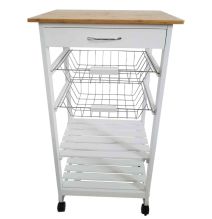 La movilidad es otro punto fuerte de este carro de cocina. Equipado con cuatro ruedas giratorias, dos de las cuales cuentan con freno, el carro se desplaza con facilidad, permitiendo utilizarlo como una camarera auxiliar durante la preparación de alimentos o servir comidas. Además, su diseño incluye tres cestas metálicas y un cajón para accesorios, ofreciendo múltiples opciones de almacenamiento que facilitan la organización de utensilios, ingredientes y otros elementos esenciales de la cocina.